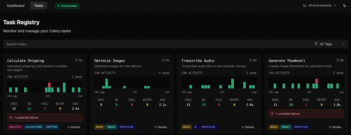 Kanchi is a real-time Celery task monitoring (and management) system with an enjoyable user interface.