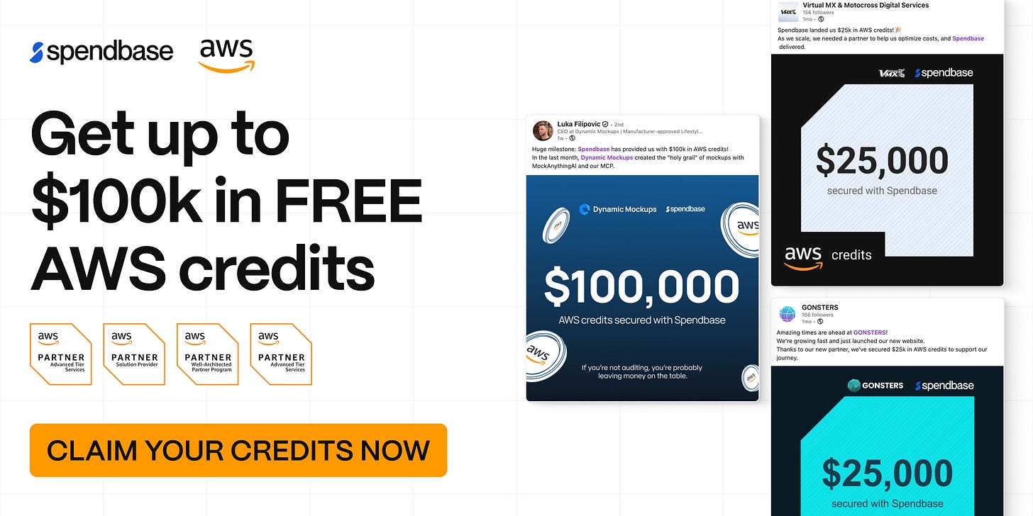 How to reduce your AWS expenses without compromising your product's potential? Spendbase, in partnership with AWS, offers up to $100k in free AWS credits for DevOps Bulletin subscribers. The application process is simple: new & existing AWS users are eligible (even if you've received credits before). Everything you need is a startup under 10 years old with a corporate website.