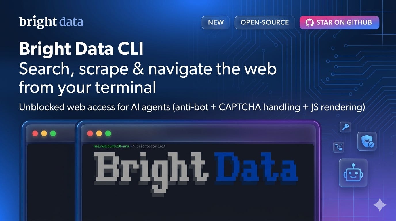 Bright Data CLI gives coding agents (Claude Code, Cursor, Copilot) real-time web scraping, search, and structured data extraction from 40+ platforms - directly from the terminal. One command. No MCP overhead. No schema bloat. 10-32x cheaper than MCP for equivalent tasks - Check out the GitHub repo